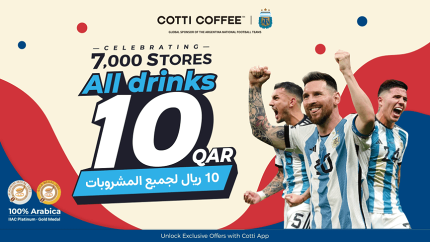 في السادس من مارس، افتتحت COTTI COFFEE، الراعي العالمي للفرق الوطنية الأرجنتينية لكرة القدم، متجرها الافتتاحي في دبي وأطلقت حملة ترويجية “جميع المشروبات بـ10 درهم إماراتي”، احتفالاً بوصولها إلى 7,000 متجر حول العالم. من المقرر أن تستمر هذه الحملة حتى الحادي والثلاثين من مايو. كما يفتتح متجر جديد في الدوحة أيضًا في مارس بنفس العرض الخاص.