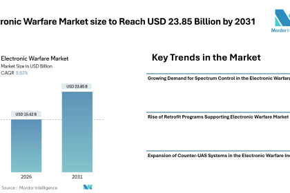 Electronic Warfare Market size to Reach USD 23.85 Billion by 2031 Driven by Spectrum Dominance Programs, Retrofit Demand, and Counter-UAS Expansion – Mordor Intelligence