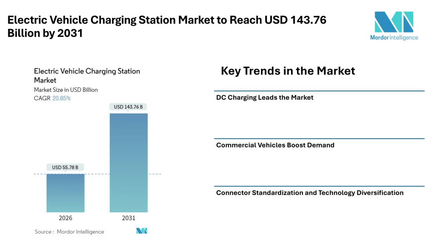 Electric Vehicle Charging Station Market to Reach USD 143.76 Billion by 2031 – Mordor Intelligence