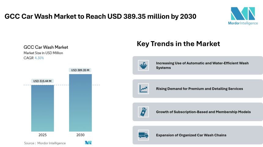 GCC Car Wash Market to Reach USD 389.35 Million by 2030, Driven by Rising Vehicle Ownership and Shift Toward Automated Wash Formats – Mordor Intelligence