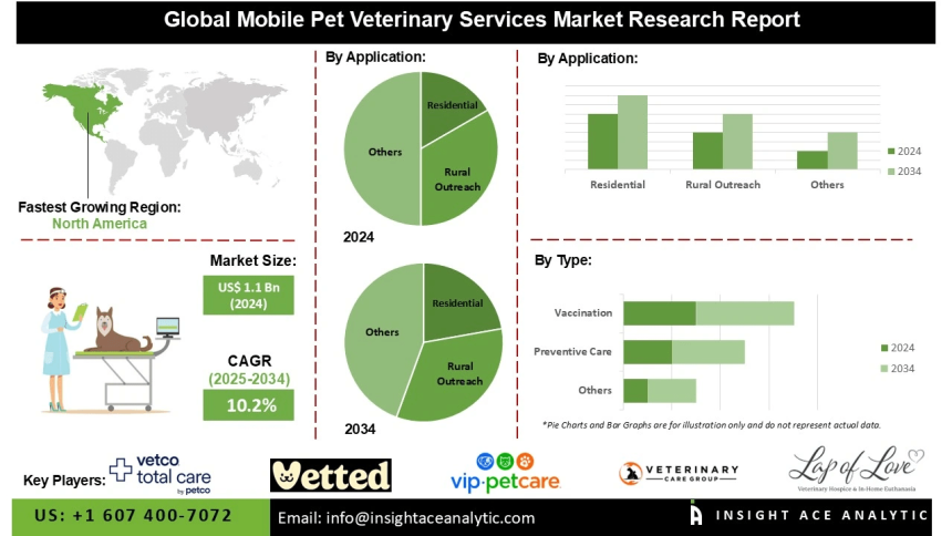 InsightAce Analytic Pvt. Ltd. announces the release of a market assessment report on the “Global Mobile Pet Veterinary Services Market Size, Share & Trends Analysis Report By Type (Vaccination, Preventive Care, and Emergency Treatment), Application (Residential, Pet Events, and Rural Outreach),-Market Outlook And Industry Analysis 2034″