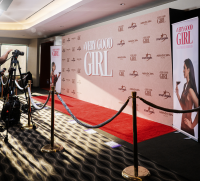 The producers of A Very Good Girl chose none other than Step and Repeat LA to create an impressive 8H x 20W Media Wall, which featured a large 3D logo of the films title placed directly in the middle of the wall, onto a stretched matte-fabric print. The fabric print featured a traditional pattern of studio logos that were printed using eco-friendly, water-based ink on a state-of-the-art HP Latex Printer.